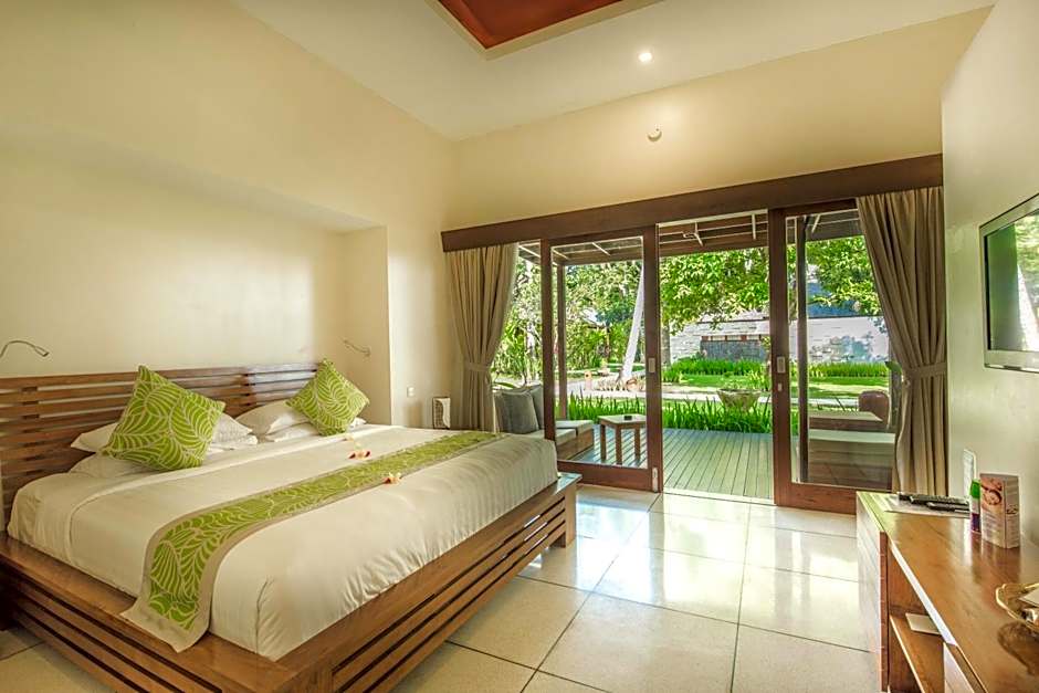 A cena da piscina é toda sobre a vista: uma piscina infinita ao ar livre que brilha o ano todo, cercada por um cenário que convida ao relaxamento. Uma entrada privativa, deck para tomar sol e pátio realçam uma vibração costeira descontraída de Lombok, com vistas para o jardim ou o lago contribuindo para a atmosfera serena.